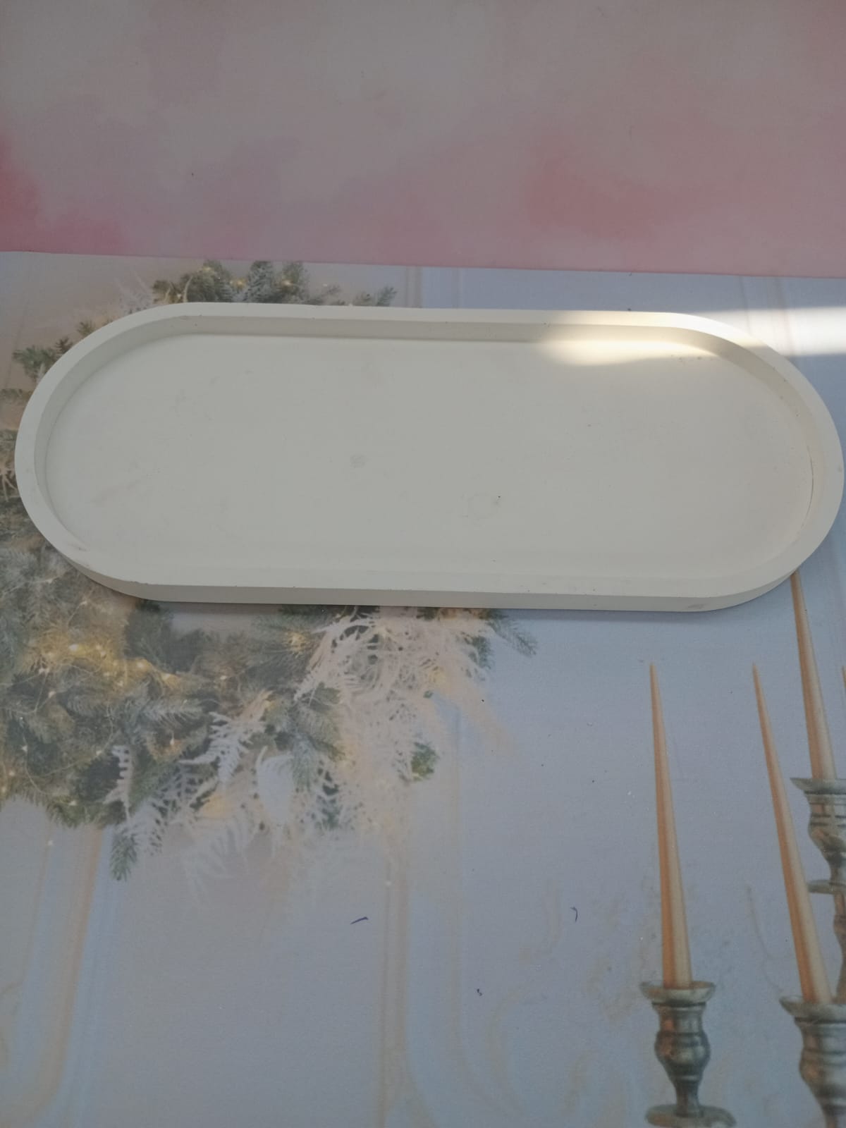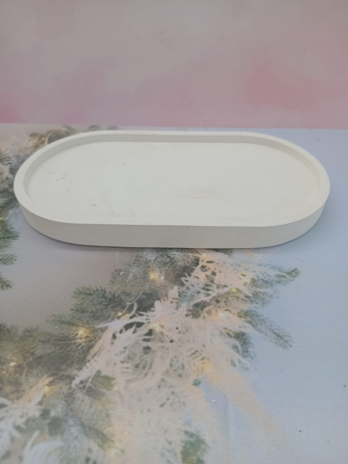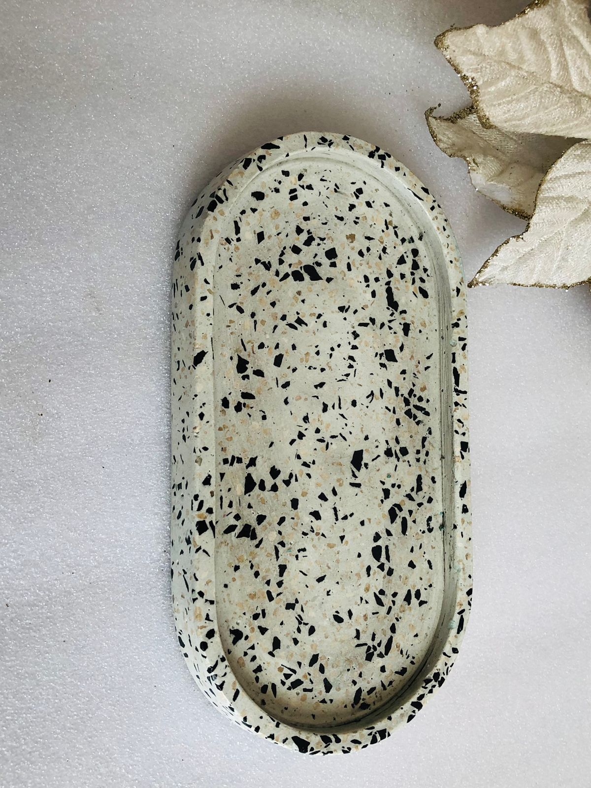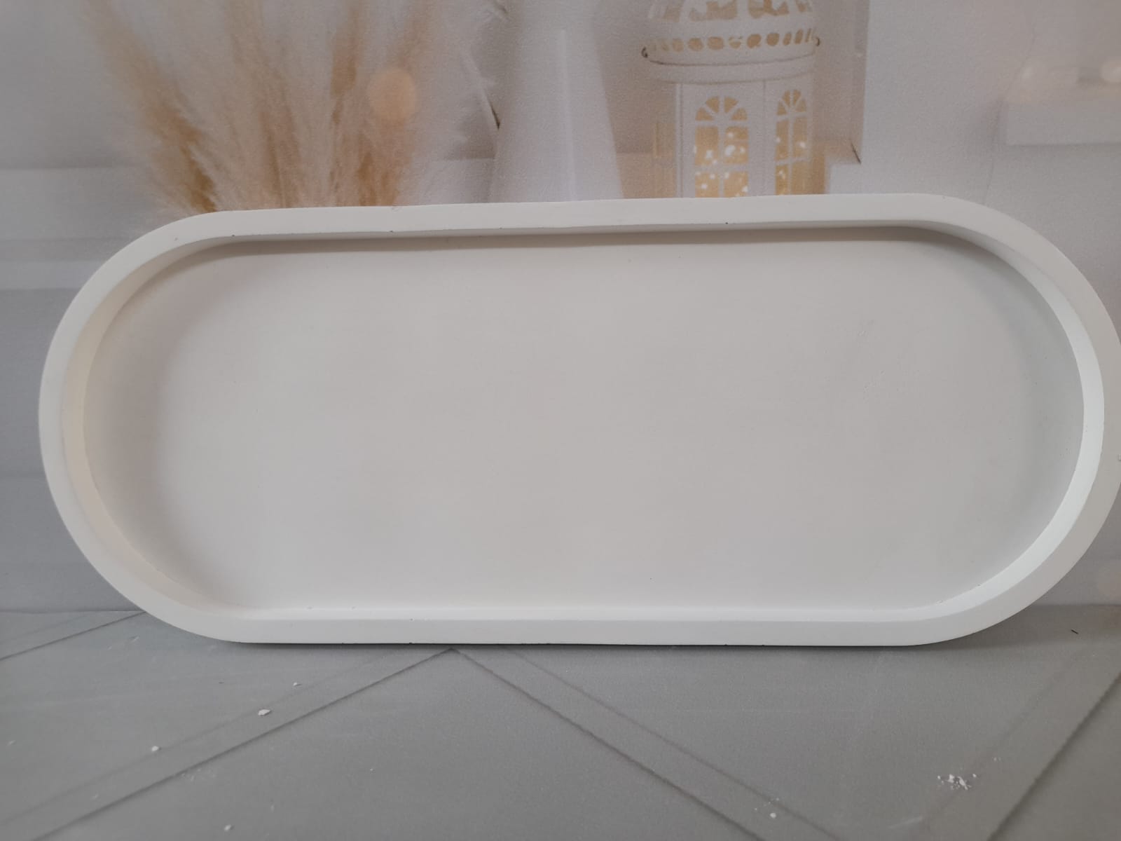 Bandeja Oval, material cemento blanco, dimension 17.5 x 9cm, peso 300g