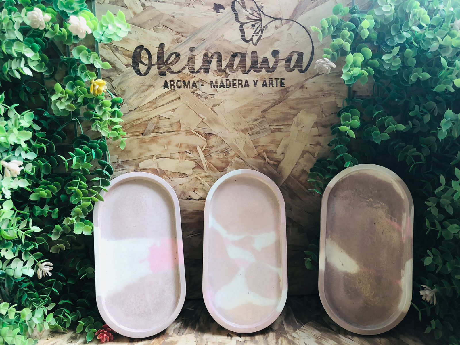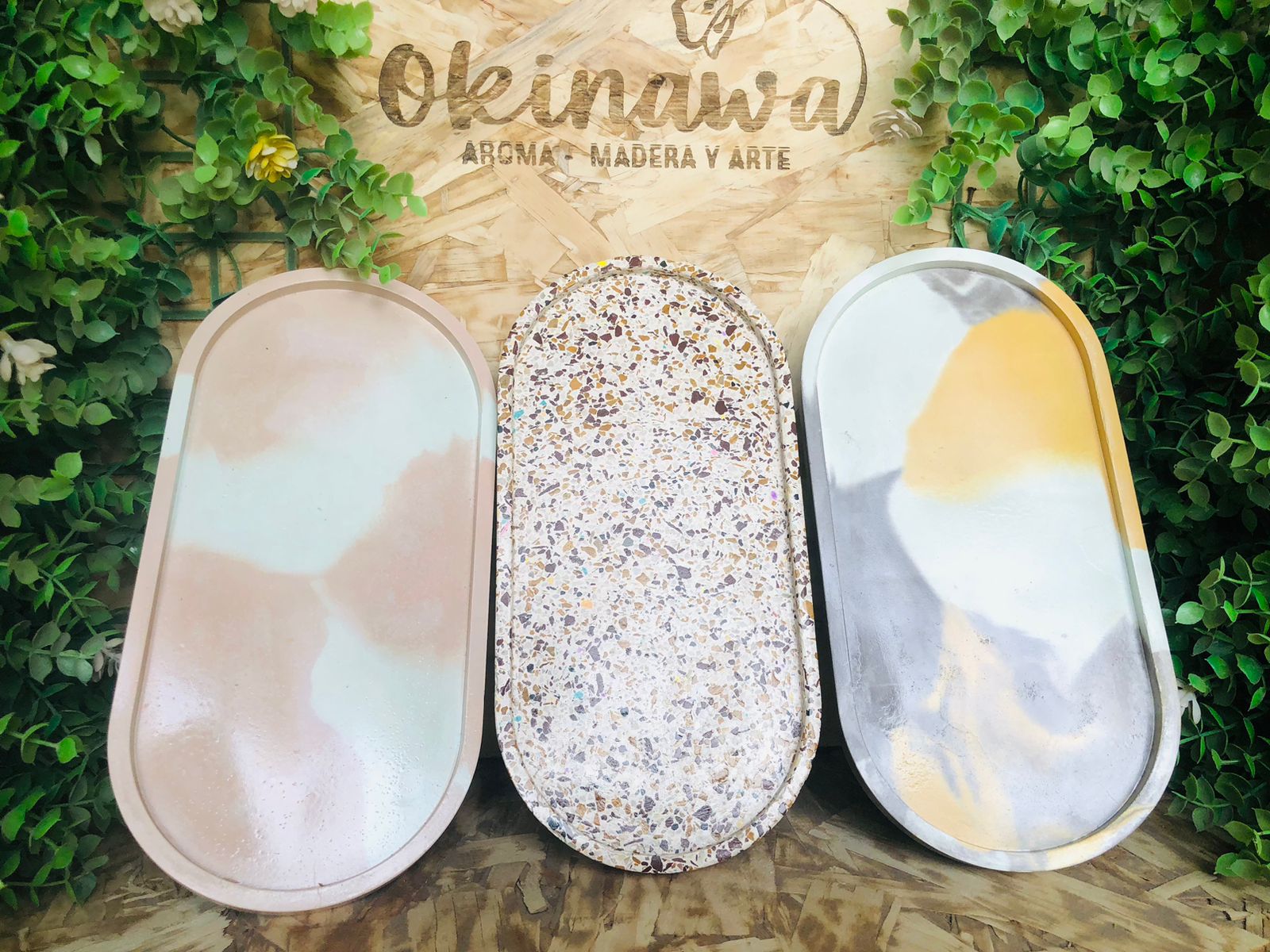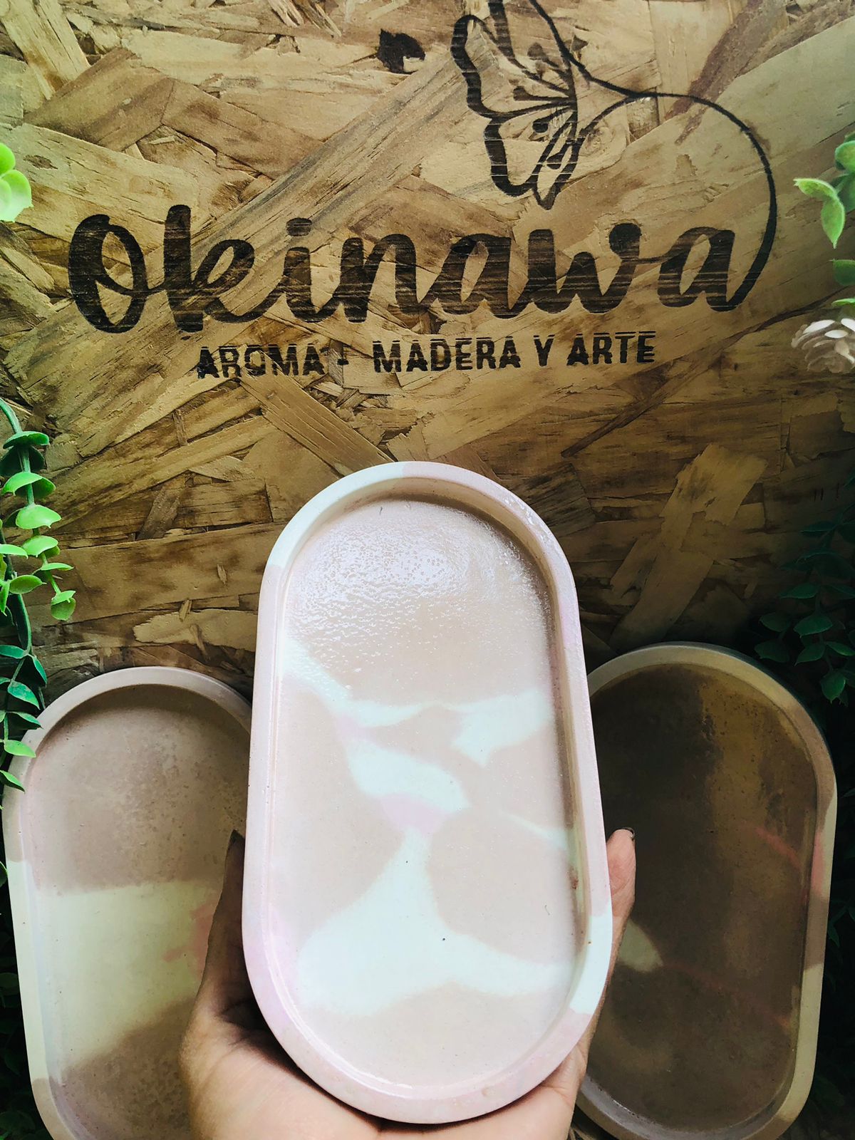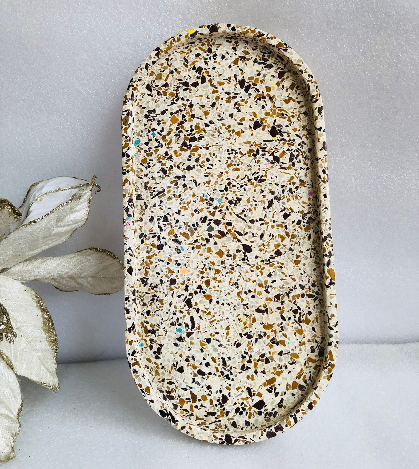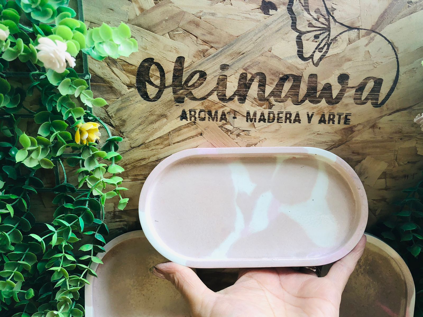 Bandeja Oval, material cemento blanco, dimension 17.5 x 9cm, peso 300g