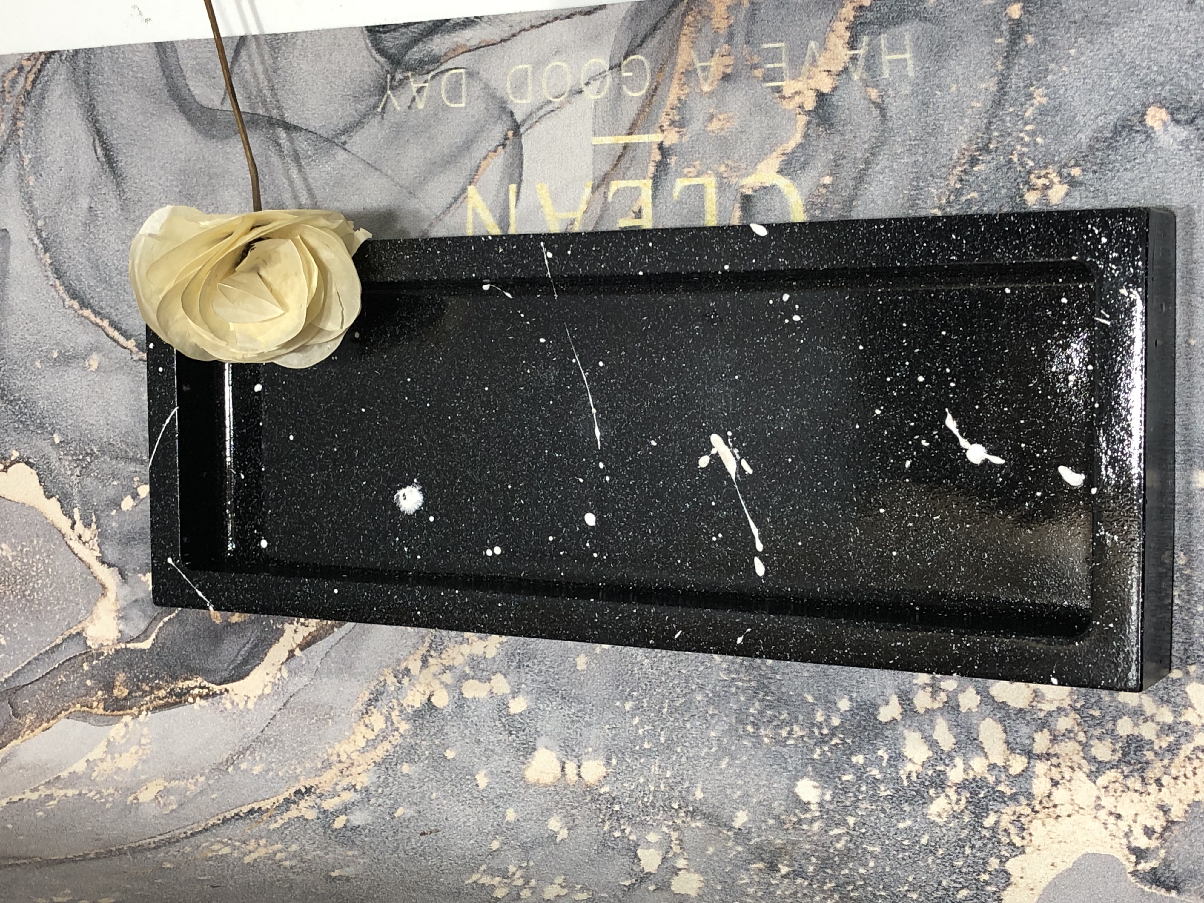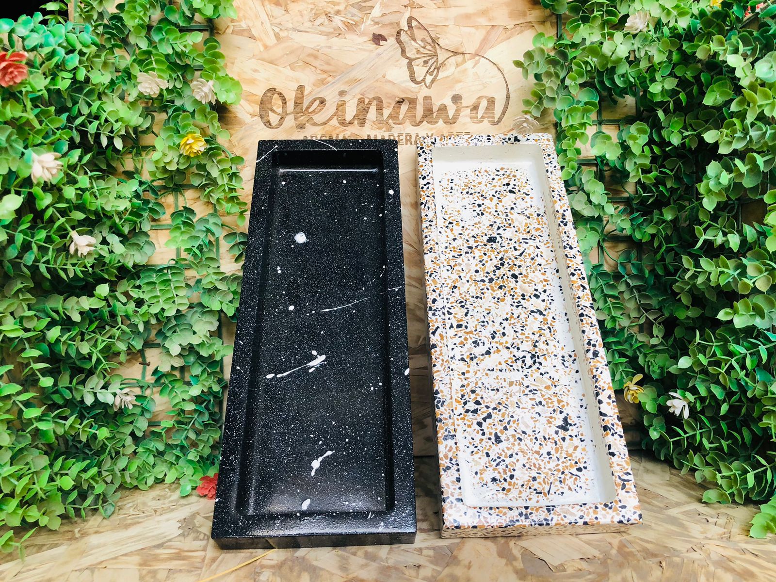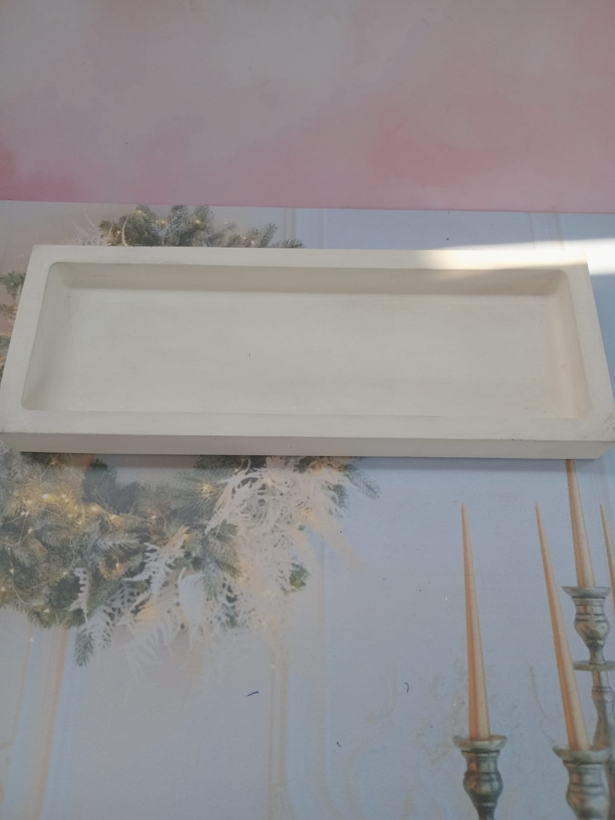 Bandeja Rectangular, material cemento blanco, dimensiones 29 x 10.5 cm, peso 830g