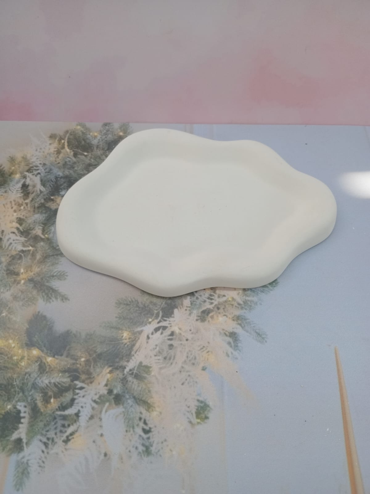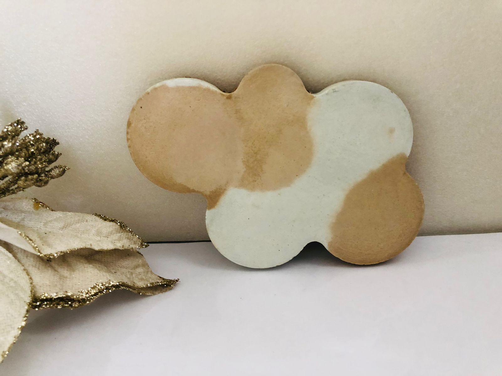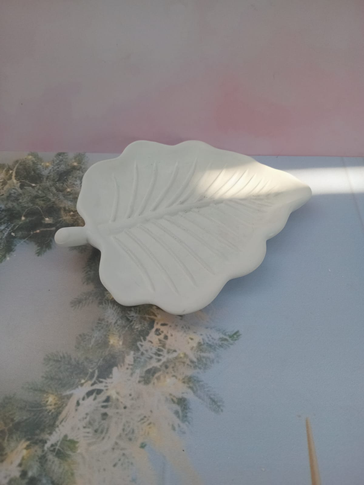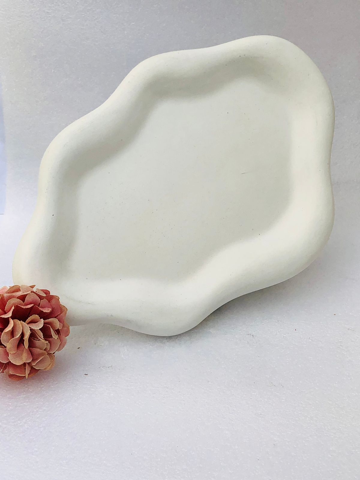 Bandeja Hoja, material cemento blanco, dimensiones 16 x 13cm, peso 200g