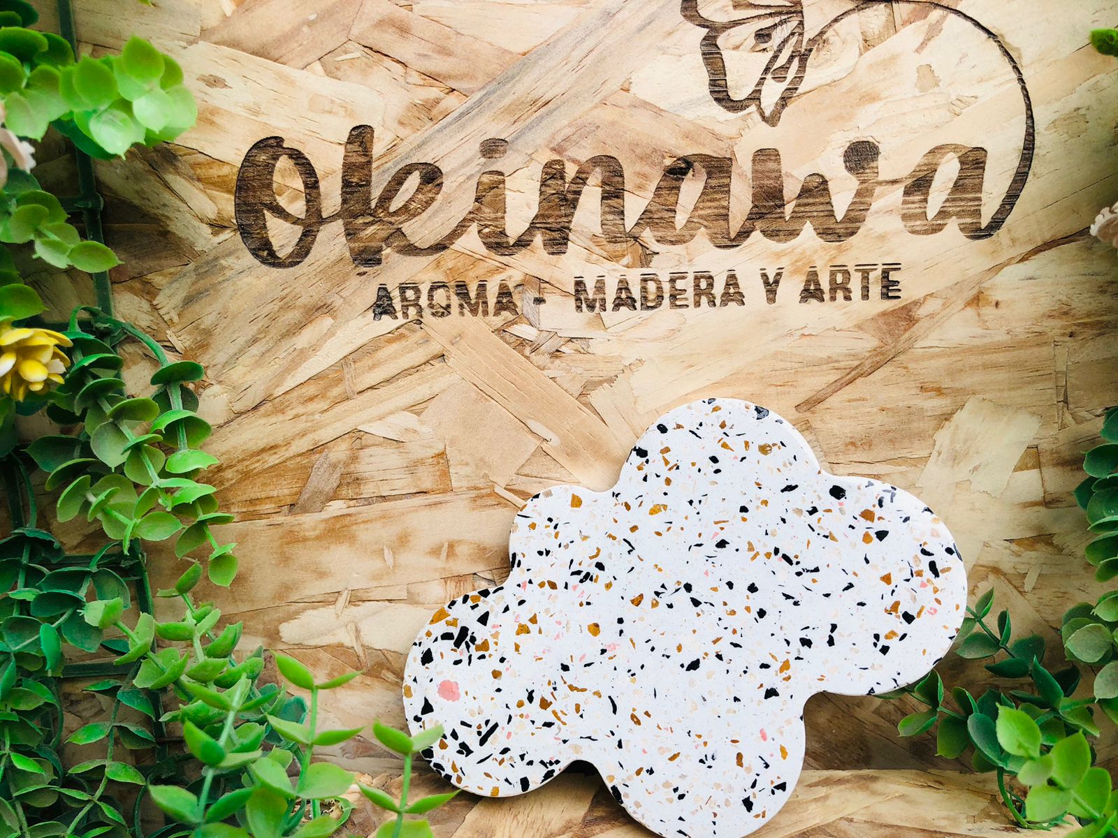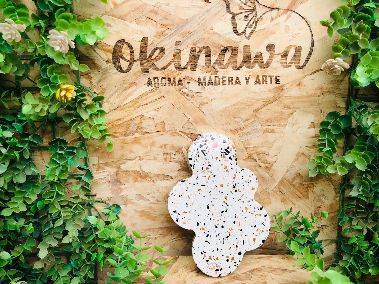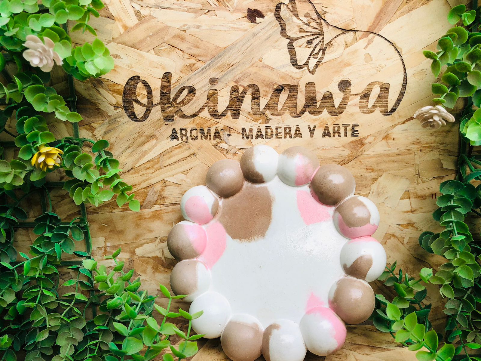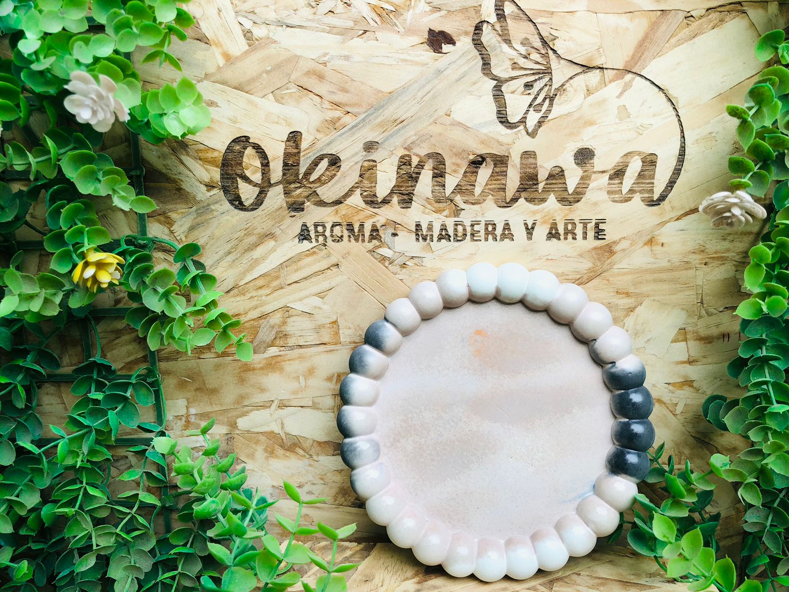 Bandeja Hoja, material cemento blanco, dimensiones 16 x 13cm, peso 200g