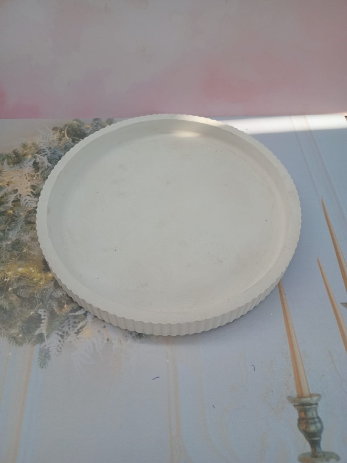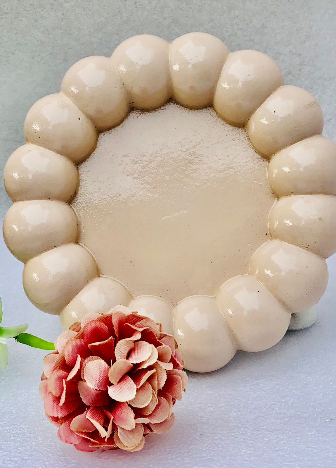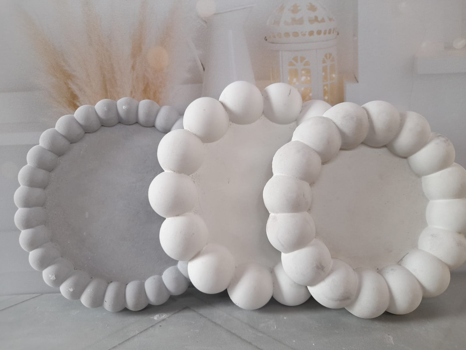 Bandeja Redonda III, material cemento blanco, D13cm, peso 120g