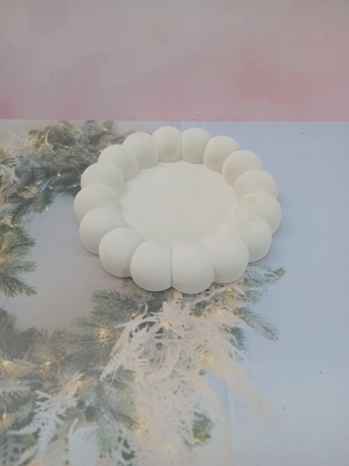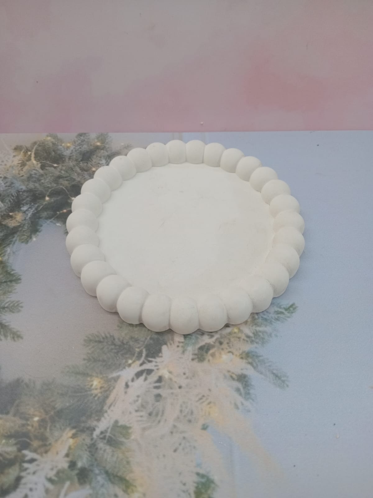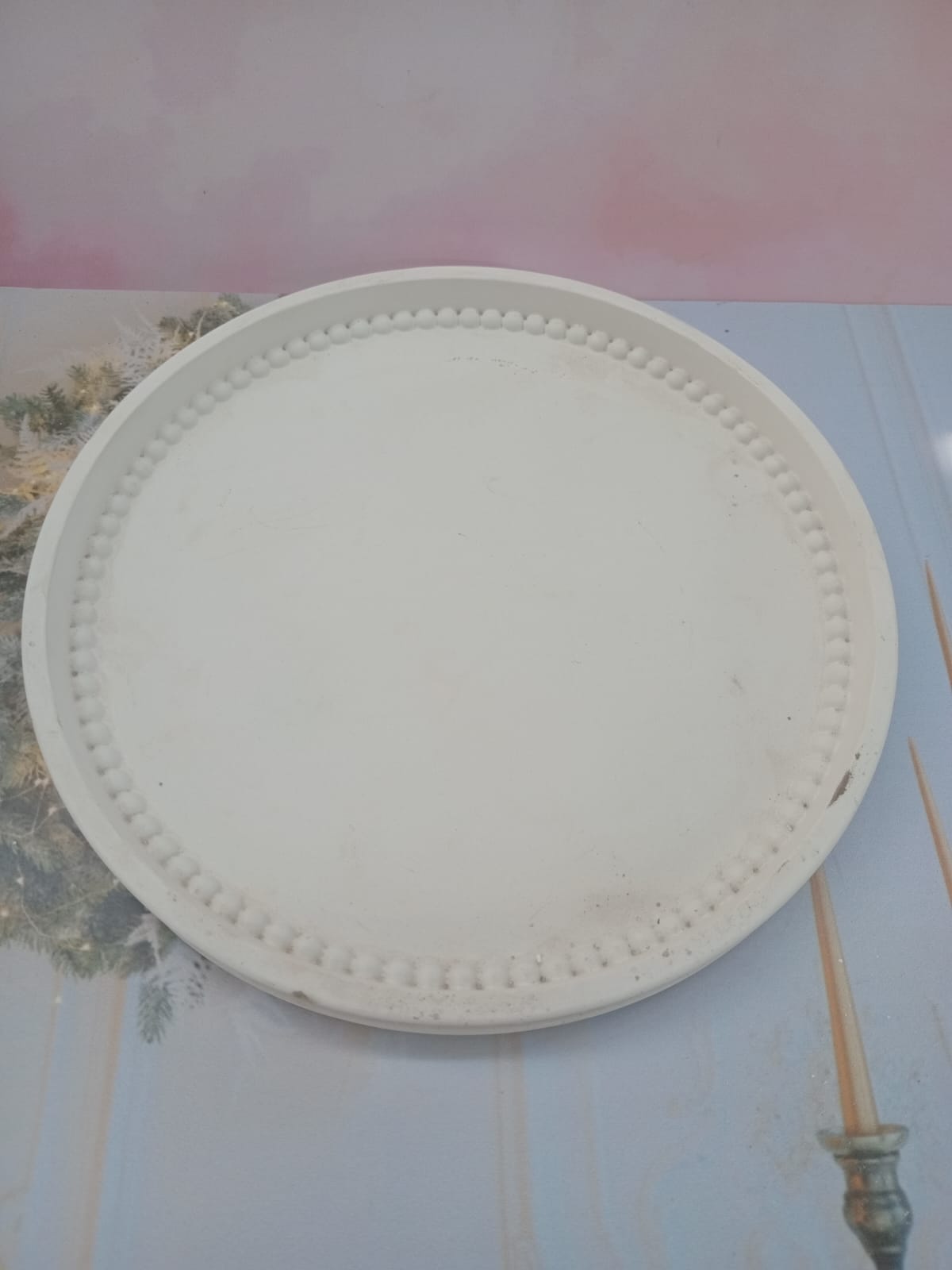 Bandeja Redonda III, material cemento blanco, D13cm, peso 120g