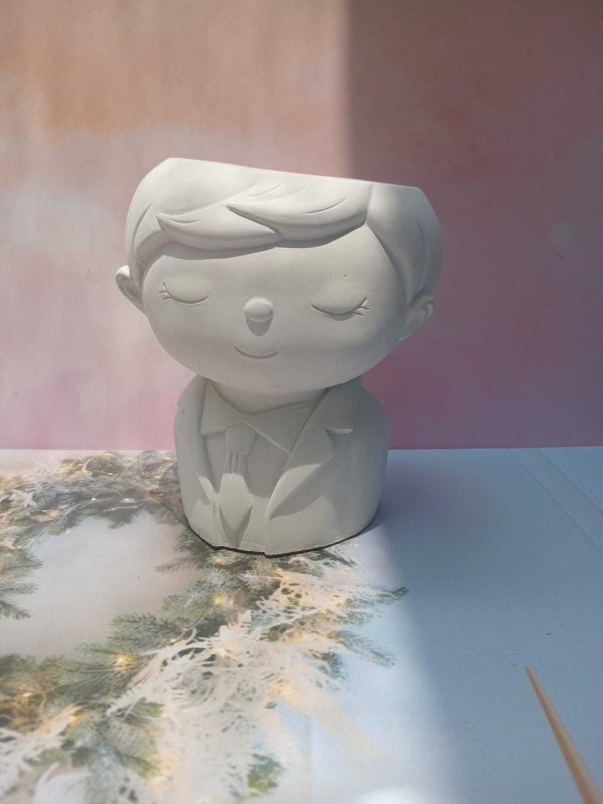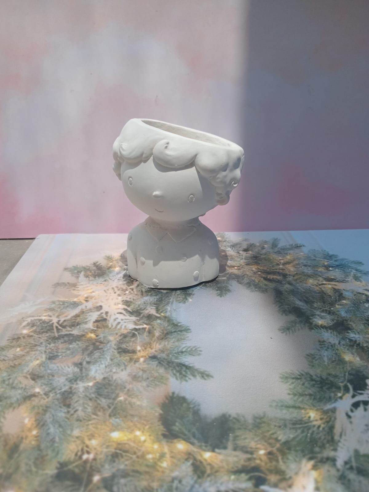 Macetita Nino, material cemento blanco, altura 9.5cm, peso 310g