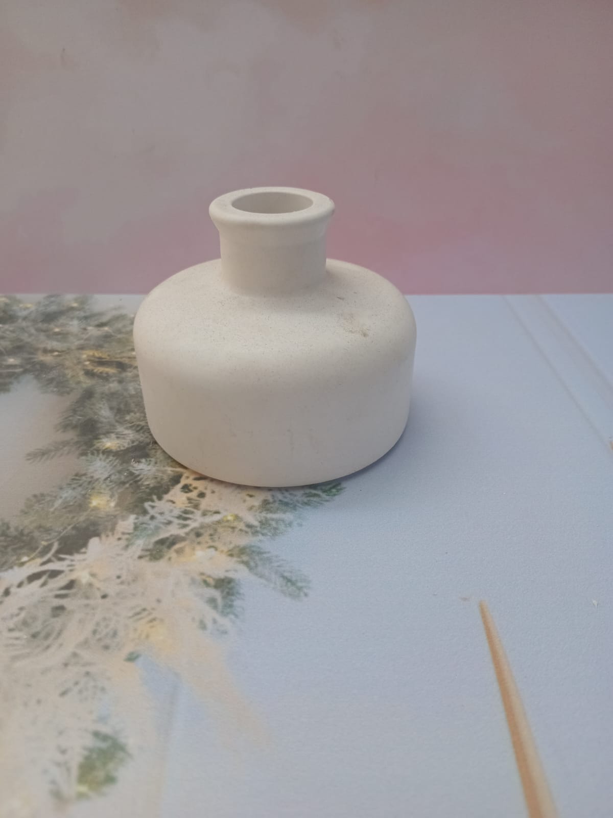 Florero Circular, material cemento blanco, altura 7cm, peso 320g