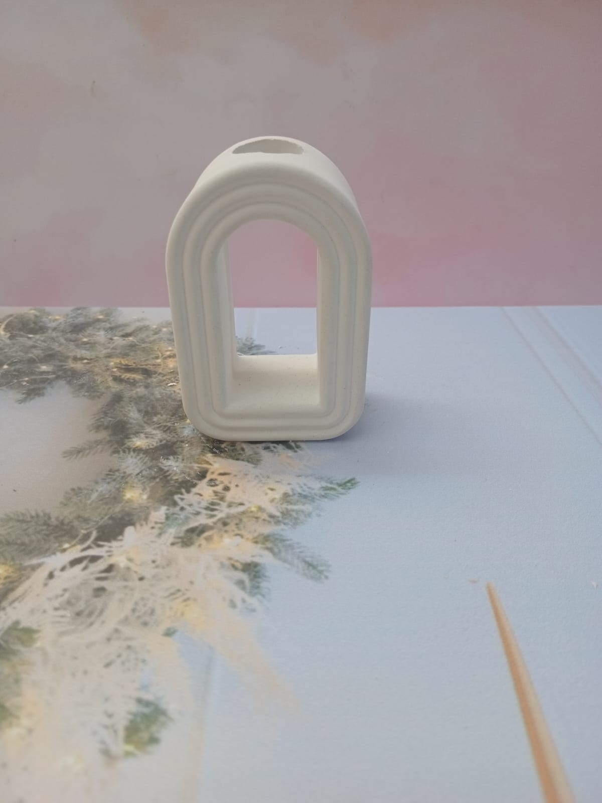 Florero Arco, material cemento blanco, altura 9cm, peso 220g