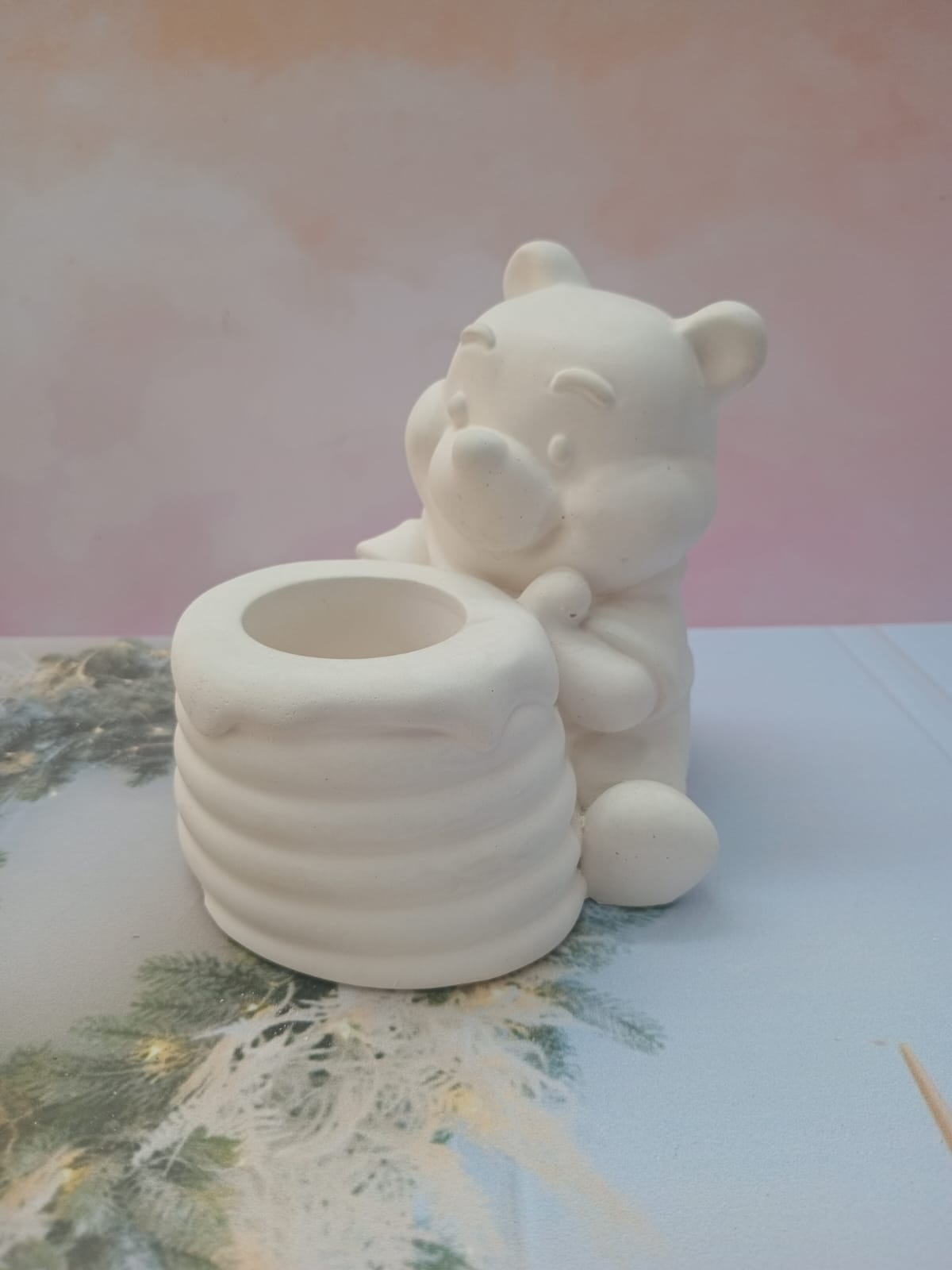 Maceta Winnie Pooh, material cemento blanco, altura 12cm, peso 1130g
