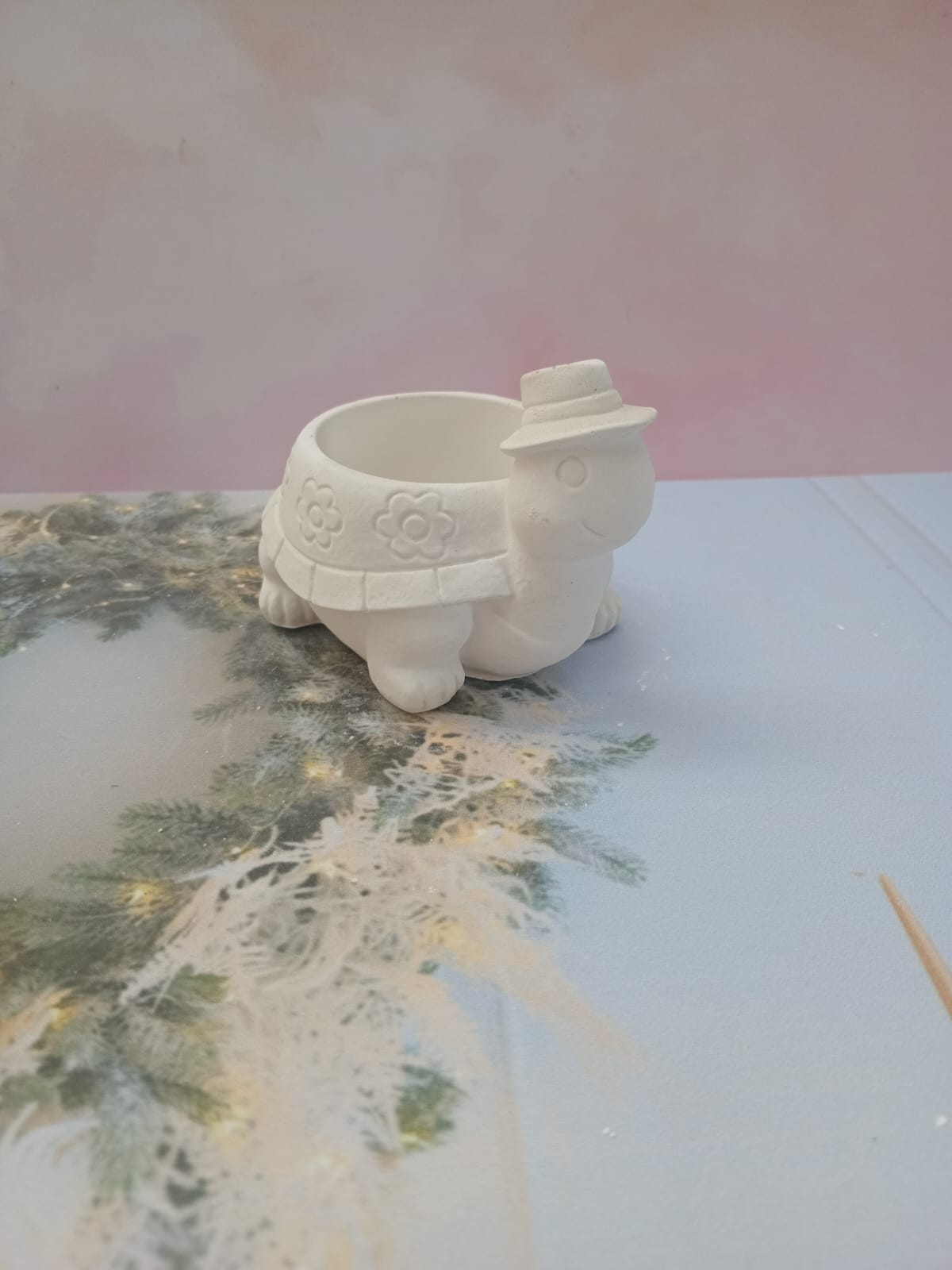 Macetita Senor Tortuga, material cemento blanco, altura 7.5cm, peso 250g