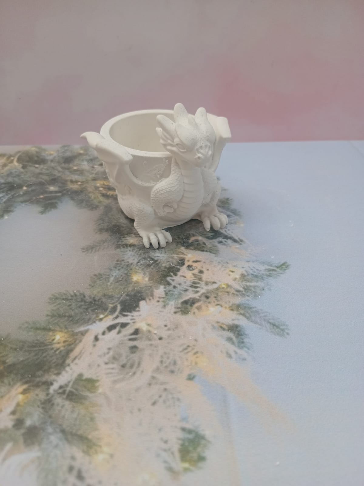 Macetita Dragoncito, material cemento blanco, altura 6cm, peso 110g