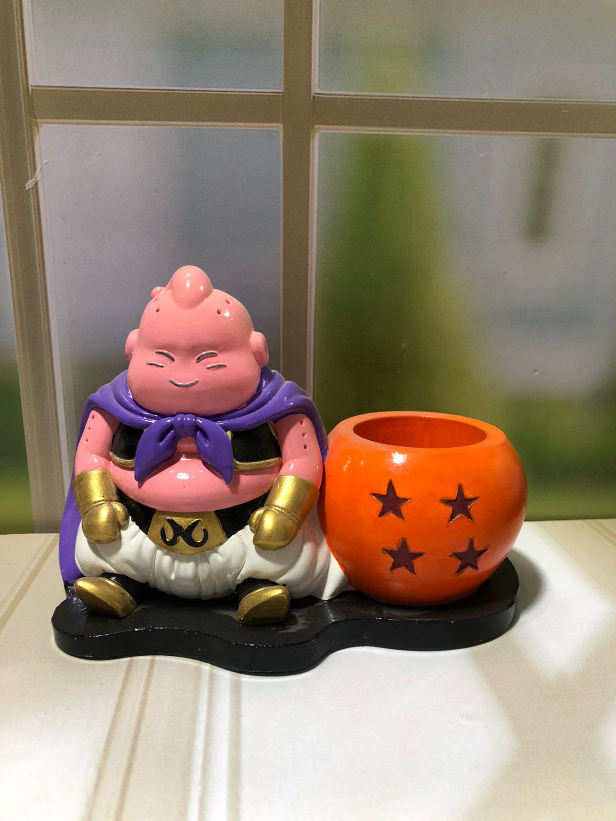 Maceta Majin Boo, material cemento blanco, altura 13cm, peso 1640g