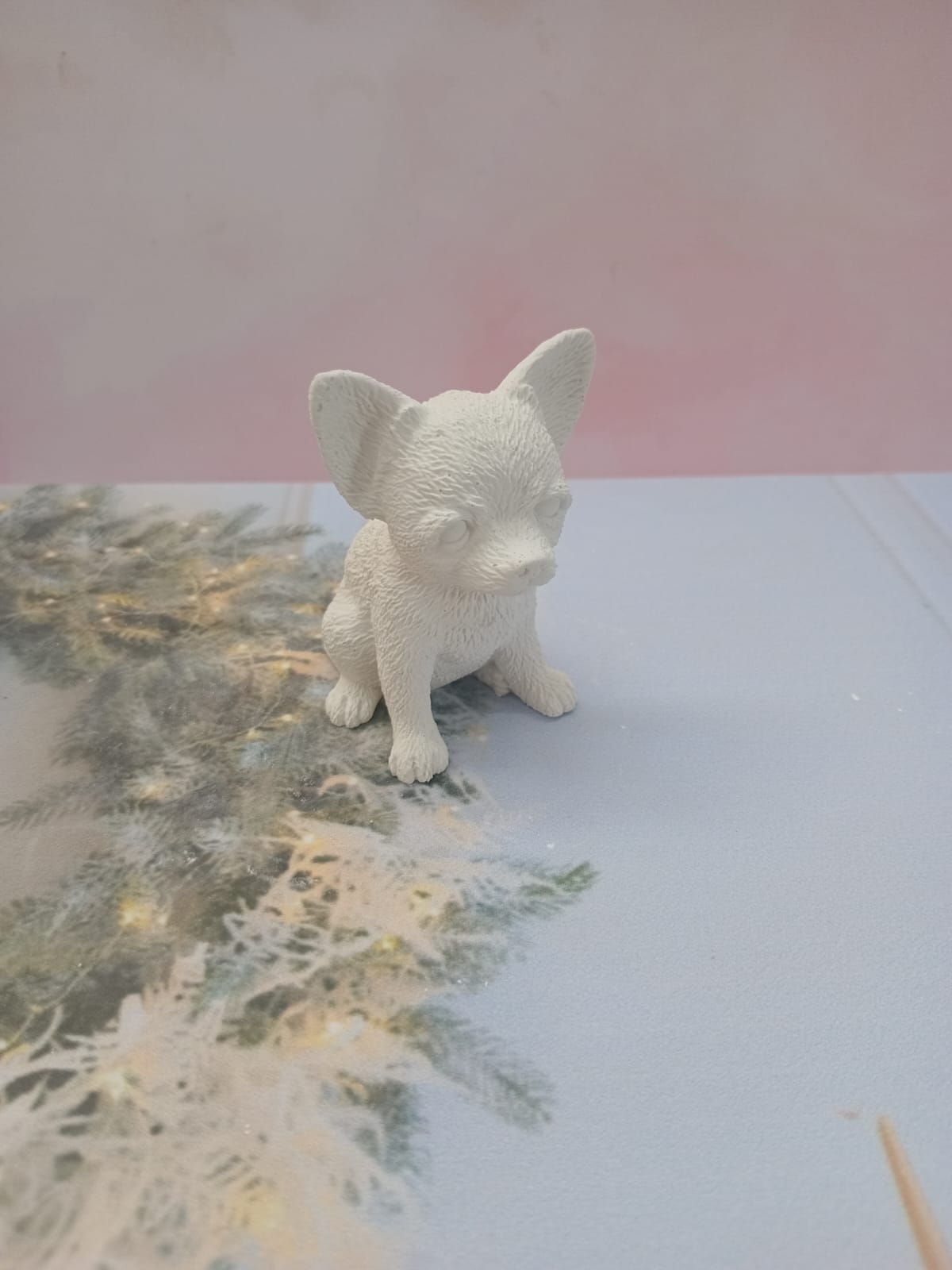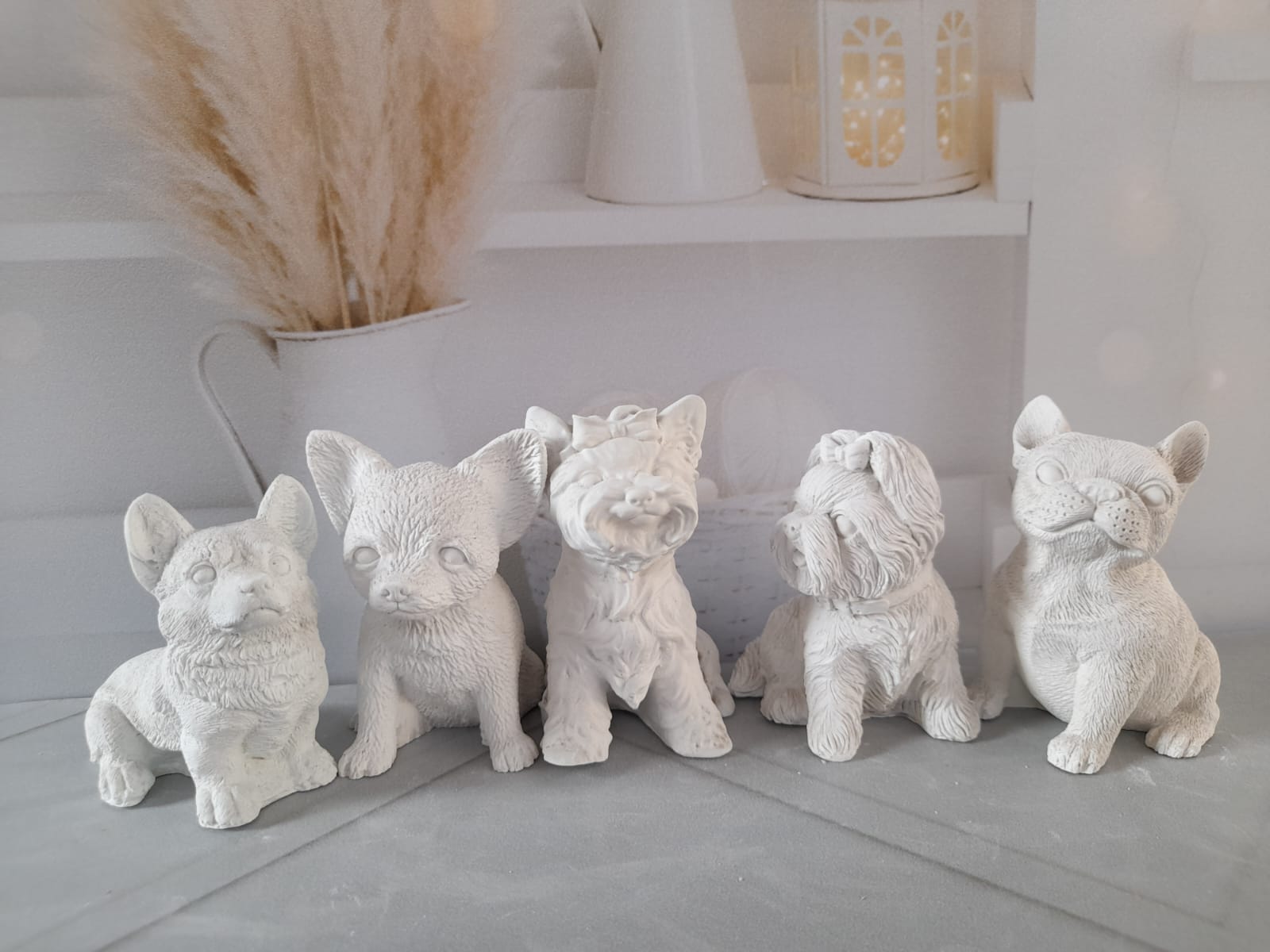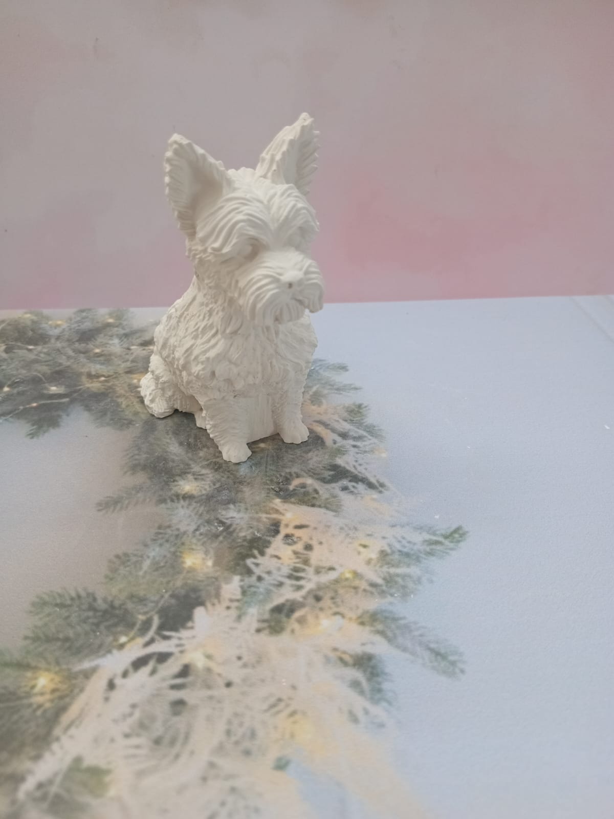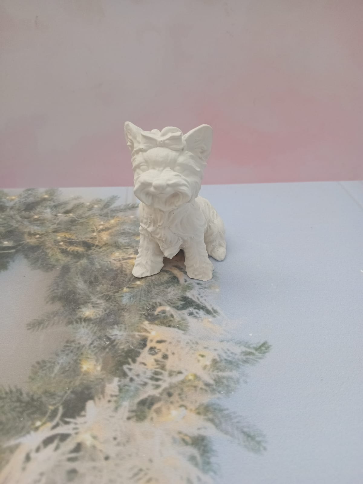 Figurita Yorki con Lasito, material cemento blanco, altura 7cm, peso 100g