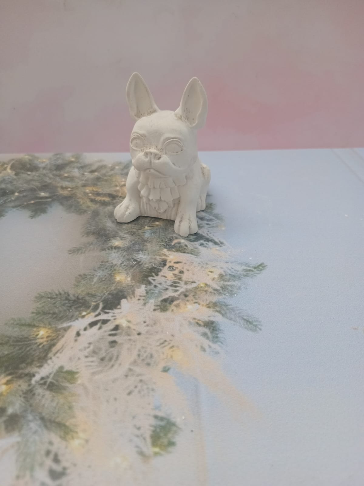 Figurita Pug, material cemento blanco, altura 7cm, peso 100g