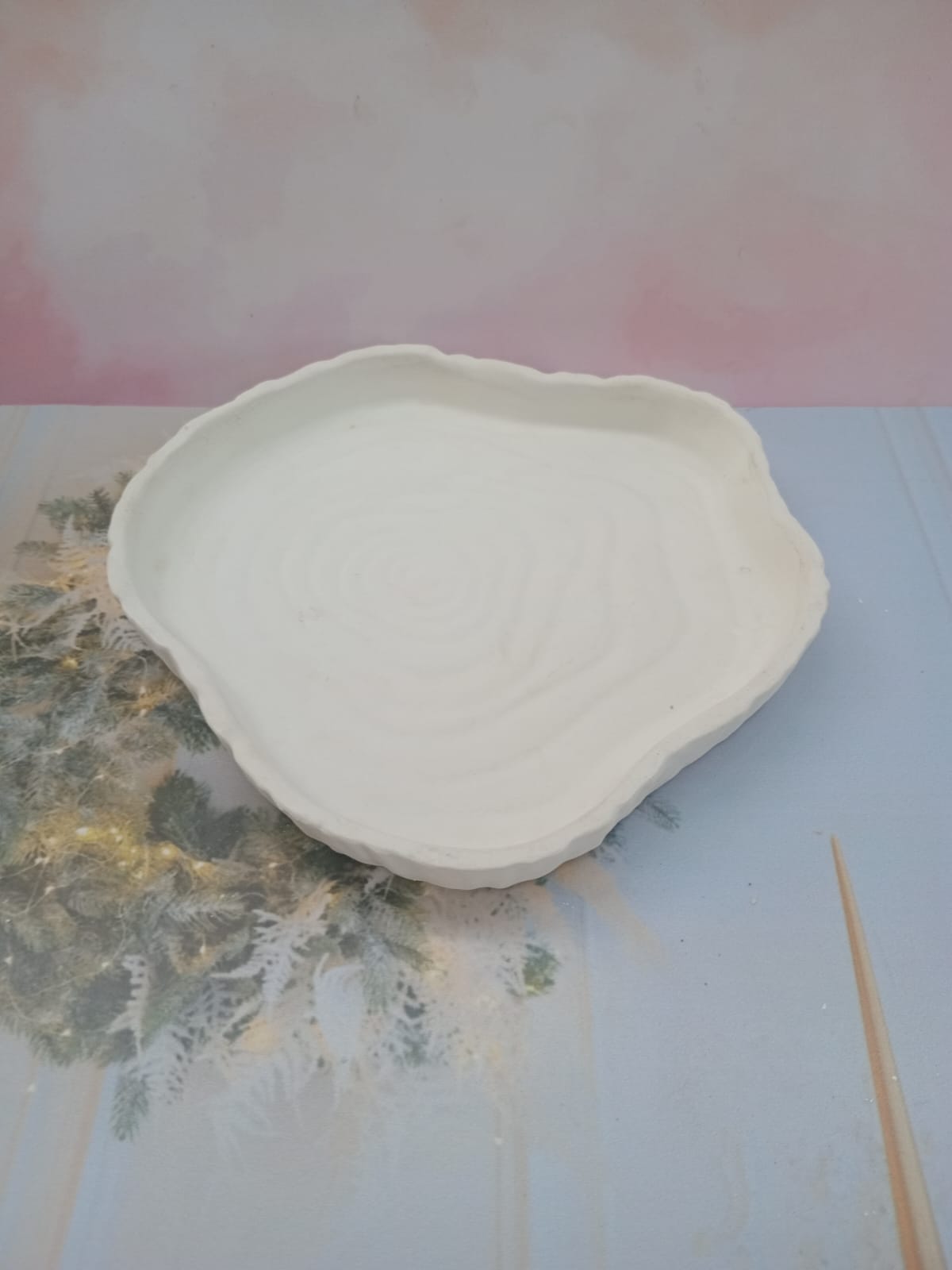 Bandeja Tronco, material cemento blanco, dimensiones 22 x 20cm, peso 500g