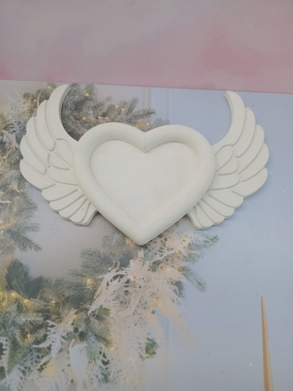 Bandeja Corazon con Alas, material cemento blanco, dimensiones 21 x 15cm, peso 280g