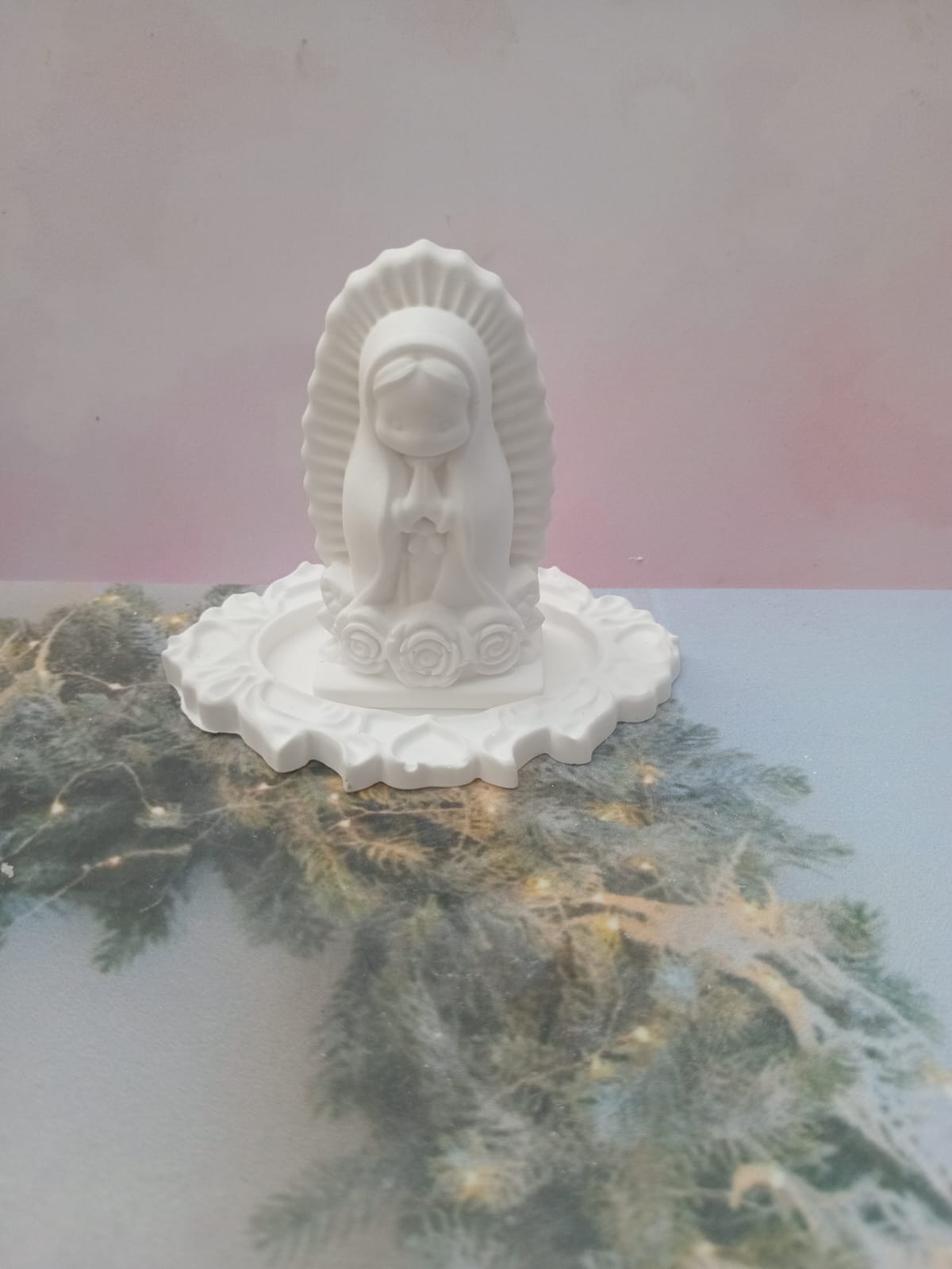 Figurita Virgencita Guadalupe, material Yesmonite, altura 8cm, peso 100g