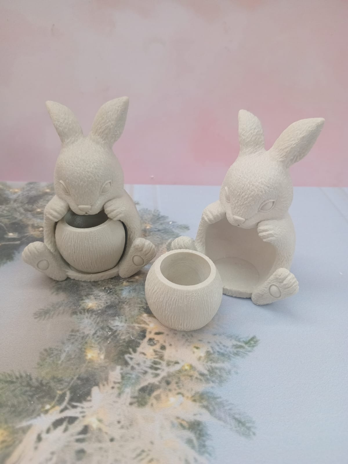 Figuritas Conejitos, material cemento blanco, altura 7.5cm, peso 150g