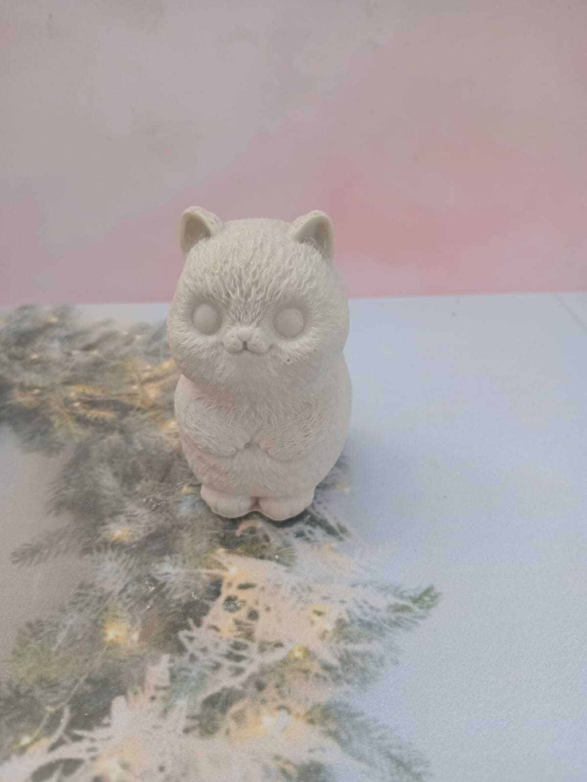 Figurita Gato gordito, material cemento blanco, altura 7cm, peso 150g