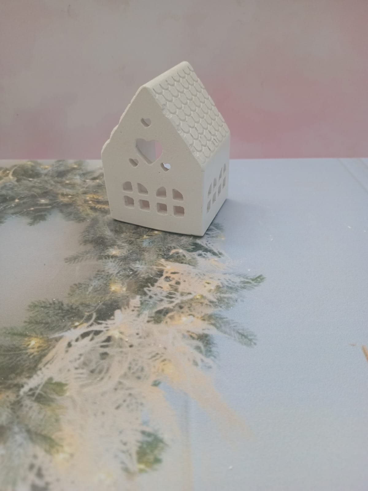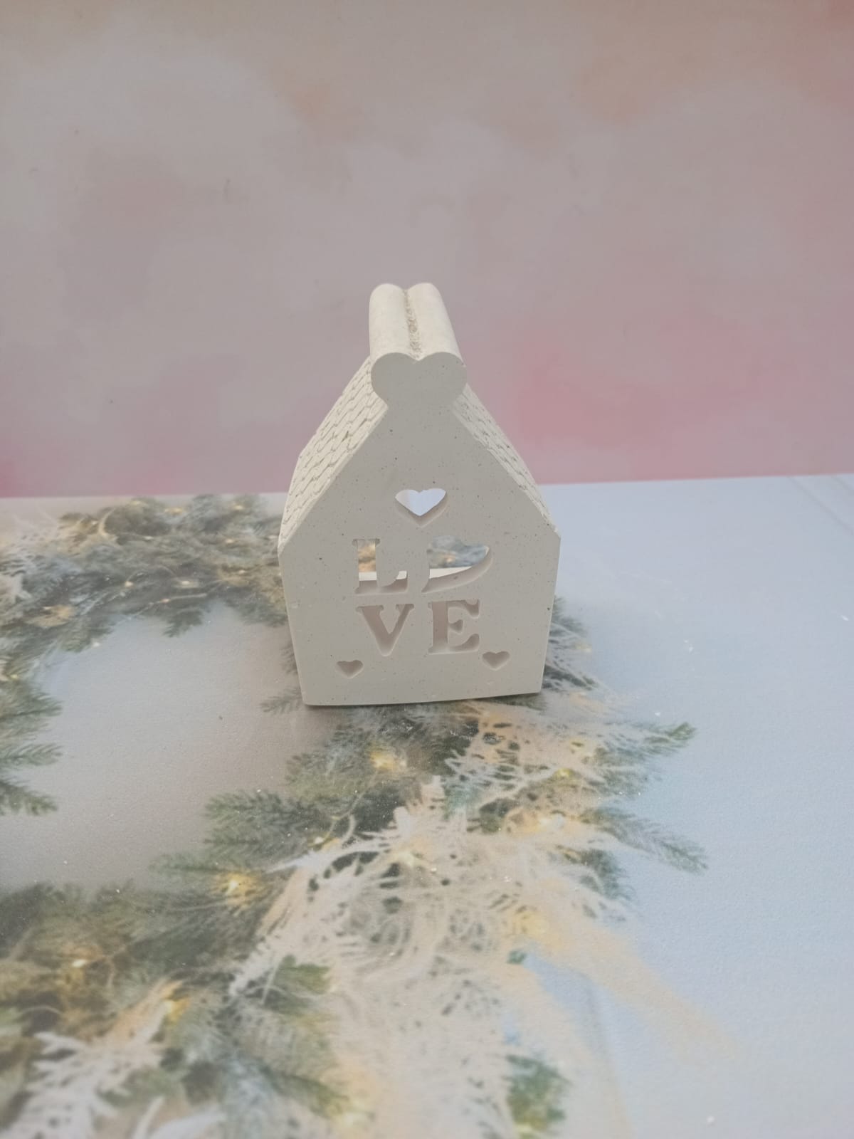 Portavela Casita, material cemento blanco, altura 8cm, peso 180g