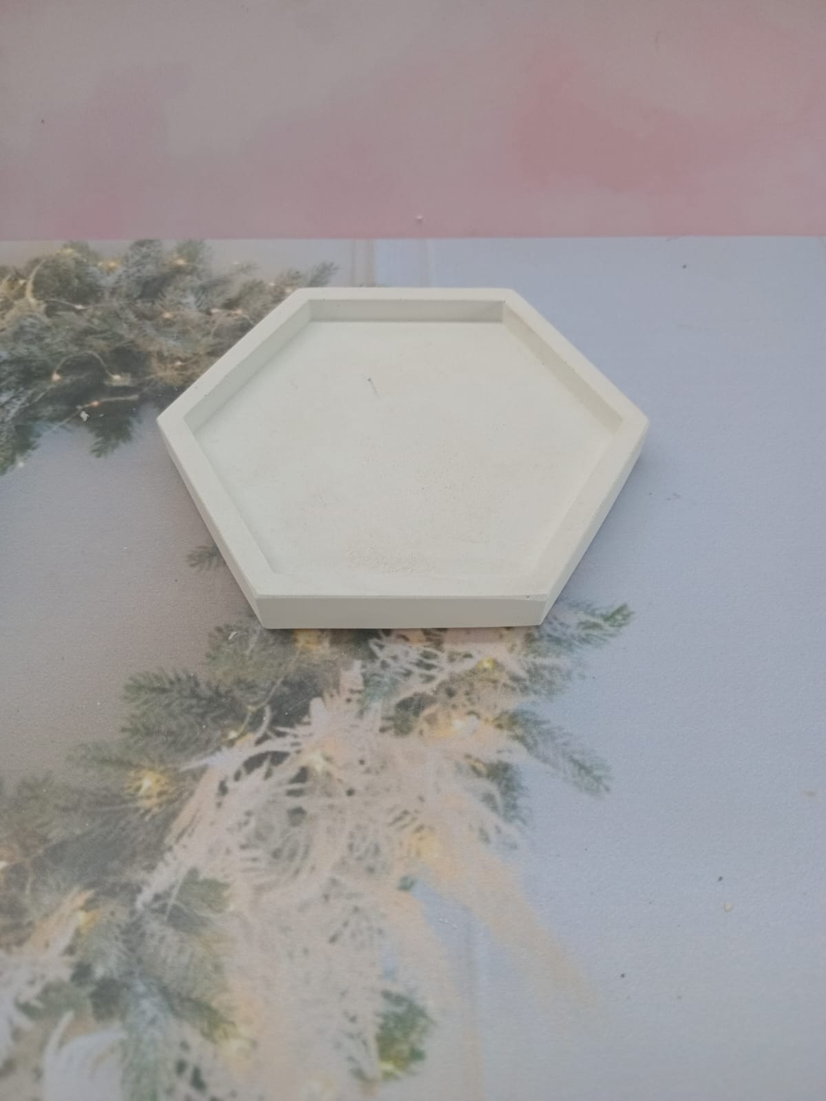 Bandejita Hexagonal, material cemento blanco, dimensiones 11.5 x 10 cm, peso 120g