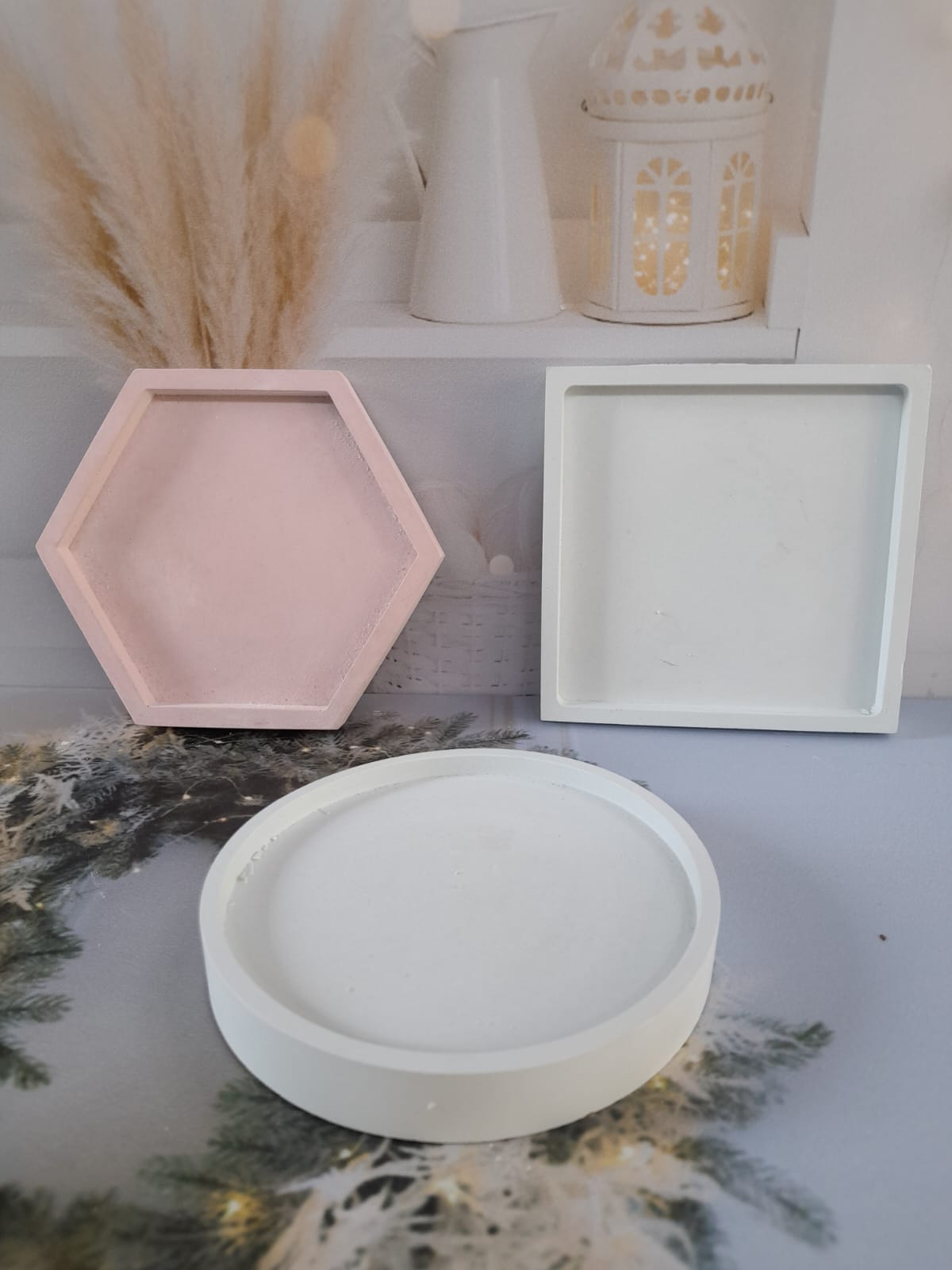 Bandeja Cuadrada, material cemento blanco, dimension 10 x 10cm, peso 220g